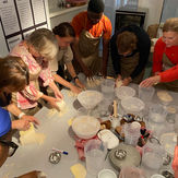 Short break with a bread-making check-in. Hands busy, conversations continue informally.